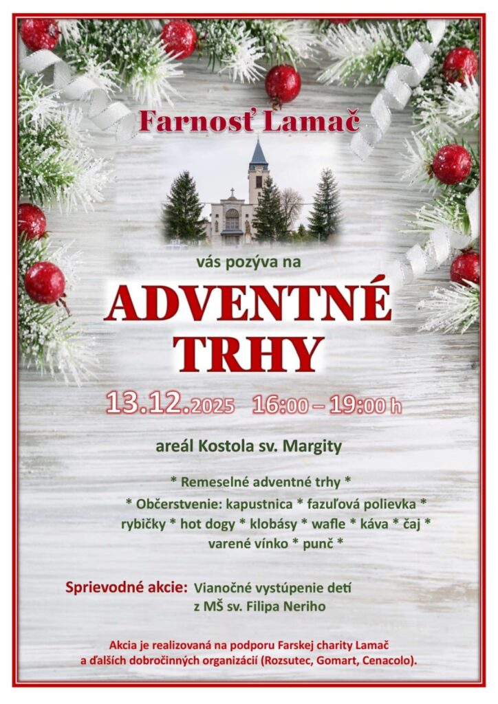 Každú adventnú nedeľu pred sv. omšou o 9:00 hod. prinesú deti svoje dary vo forme trvanlivých potravín alebo drogérie a vložia ich do košíka, ktorý bude umiestnený na viditeľnom mieste v kostole sv. Margity.